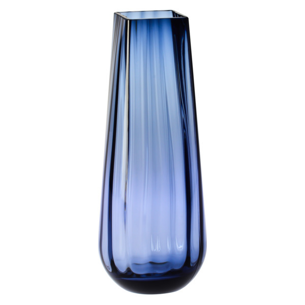 Ваза Krosno 35 см, ручная работа, стекло, темно-синяя