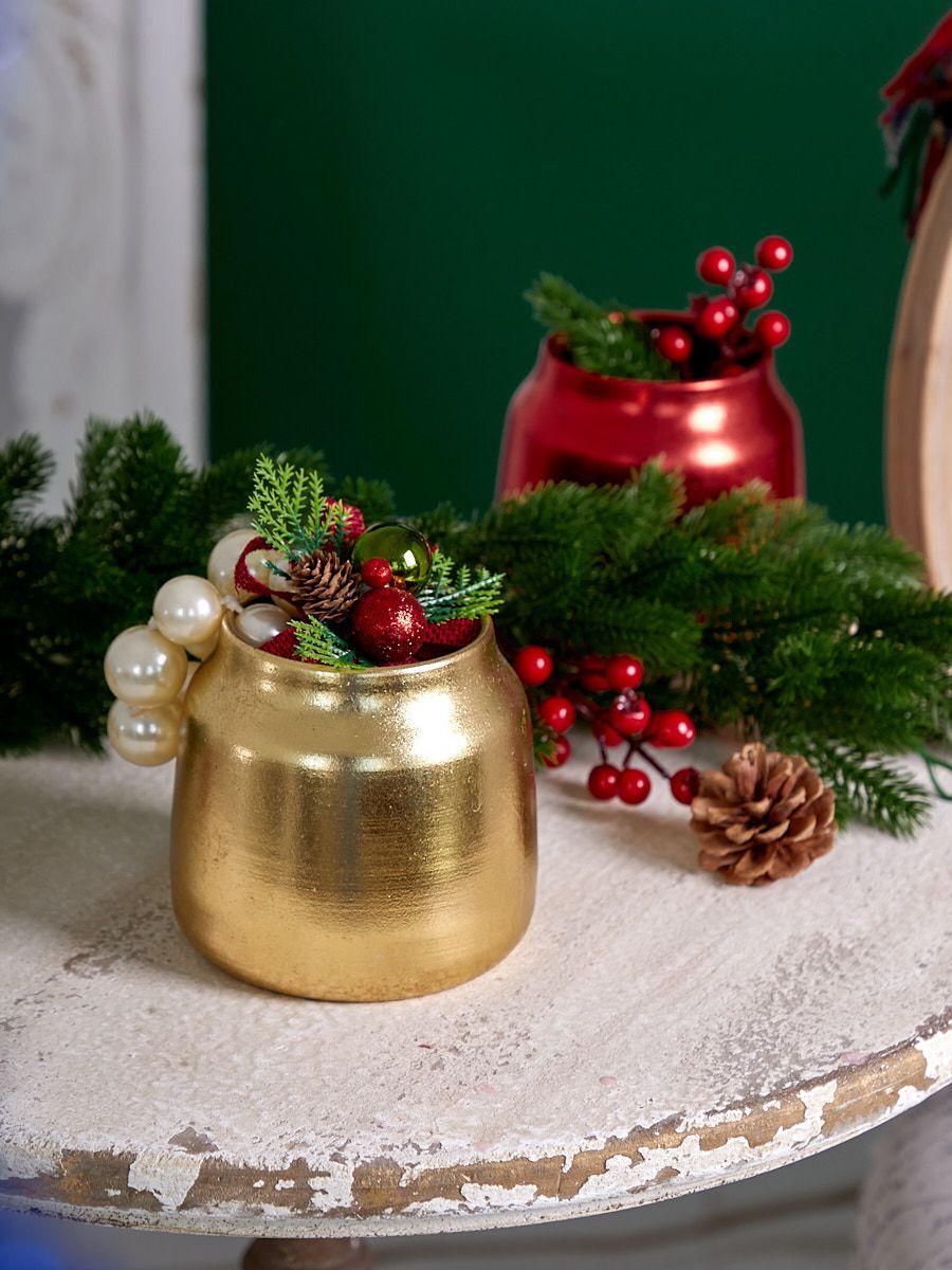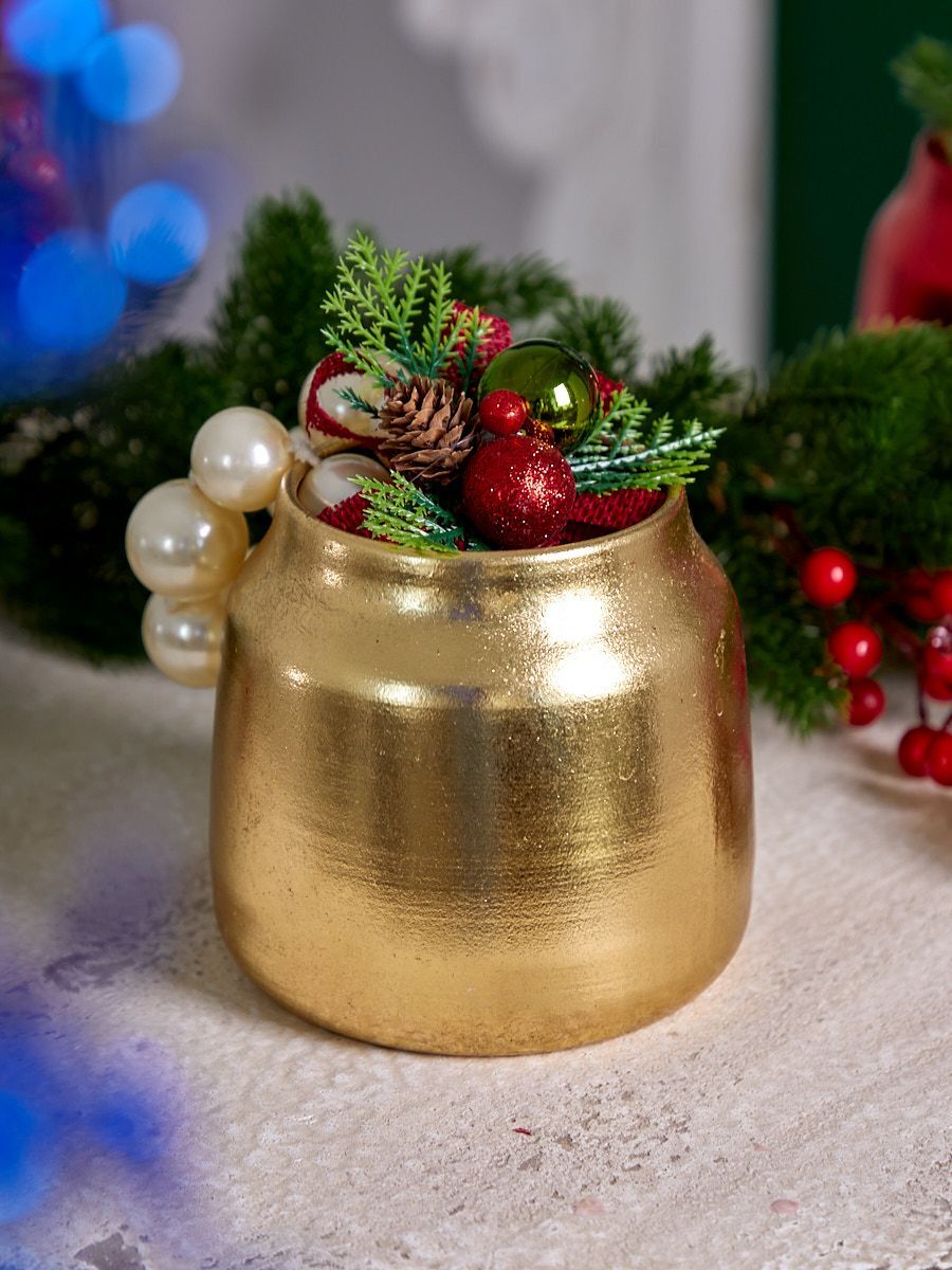 Миниатюрная вазочка золотистого цвета, созданная для сухоцветов, искусственных цветочных композиций и выполненная из металла, прекрасно впишется в любые стили интерьера. Изделие отлично подойдет как для размещения маленьких цветочных композиций, так и в качестве декора на любой поверхности в вашем доме.