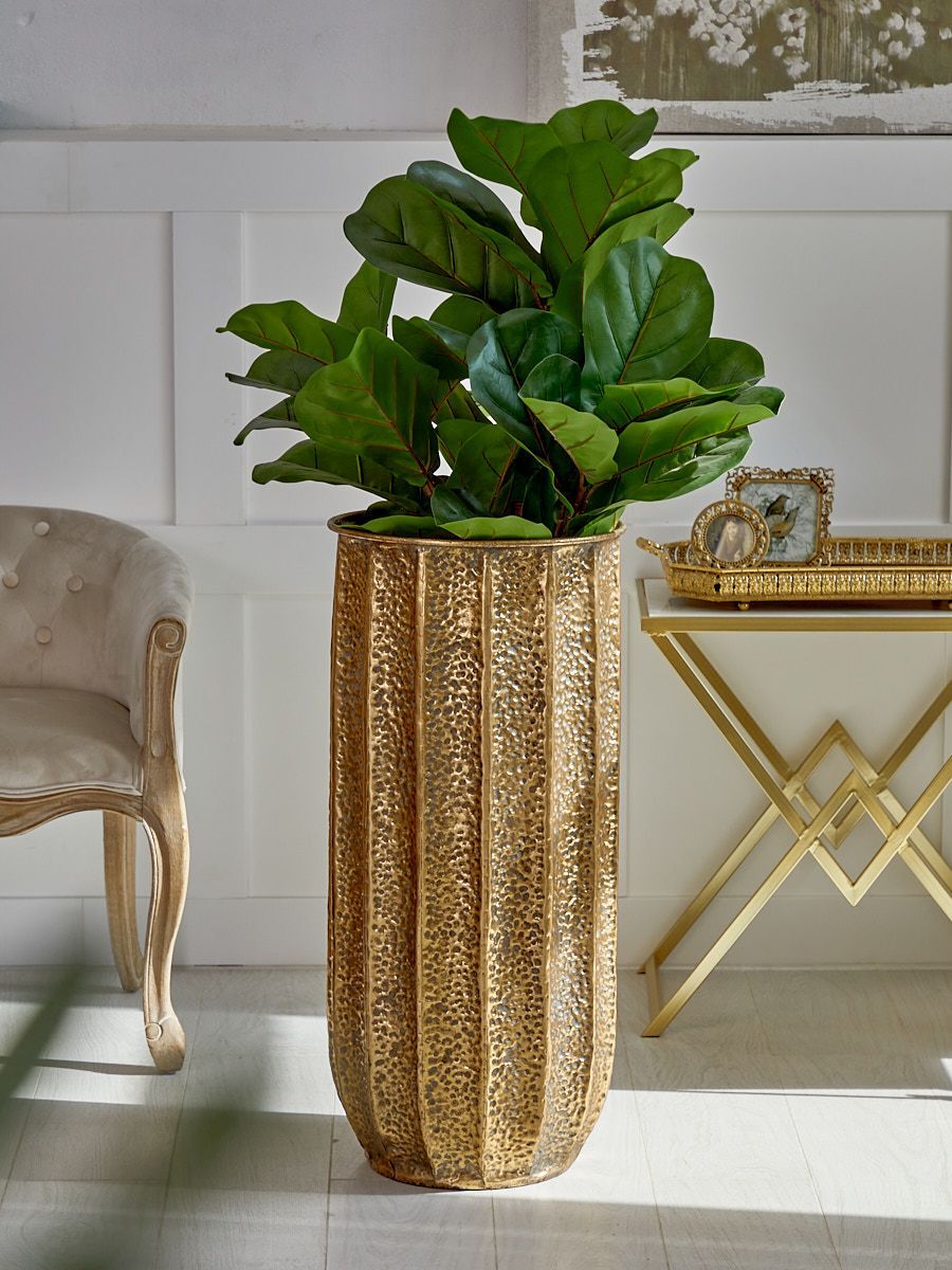 Напольная ваза Калахари, выполненная из металла в африканском стиле, с фактурной отделкой на корпусе, создана для сухоцветов и искусственных цветочных композиций. Изделие будет великолепно смотреться как с различными пышными цветочными композициями, так и отдельно стоящей в любой части вашего дома. Эксклюзивные формы и фактуры навеяло богатство культуры Африки, множество художественных традиций и таинственная атмосфера, окутывающая неподражаемостью. Изделие имеют признаки искусственного состаривания, поверхность декорирована с эффектом патинирования, а наличие сварочных швов подчеркивают принадлежность к ручной работе.