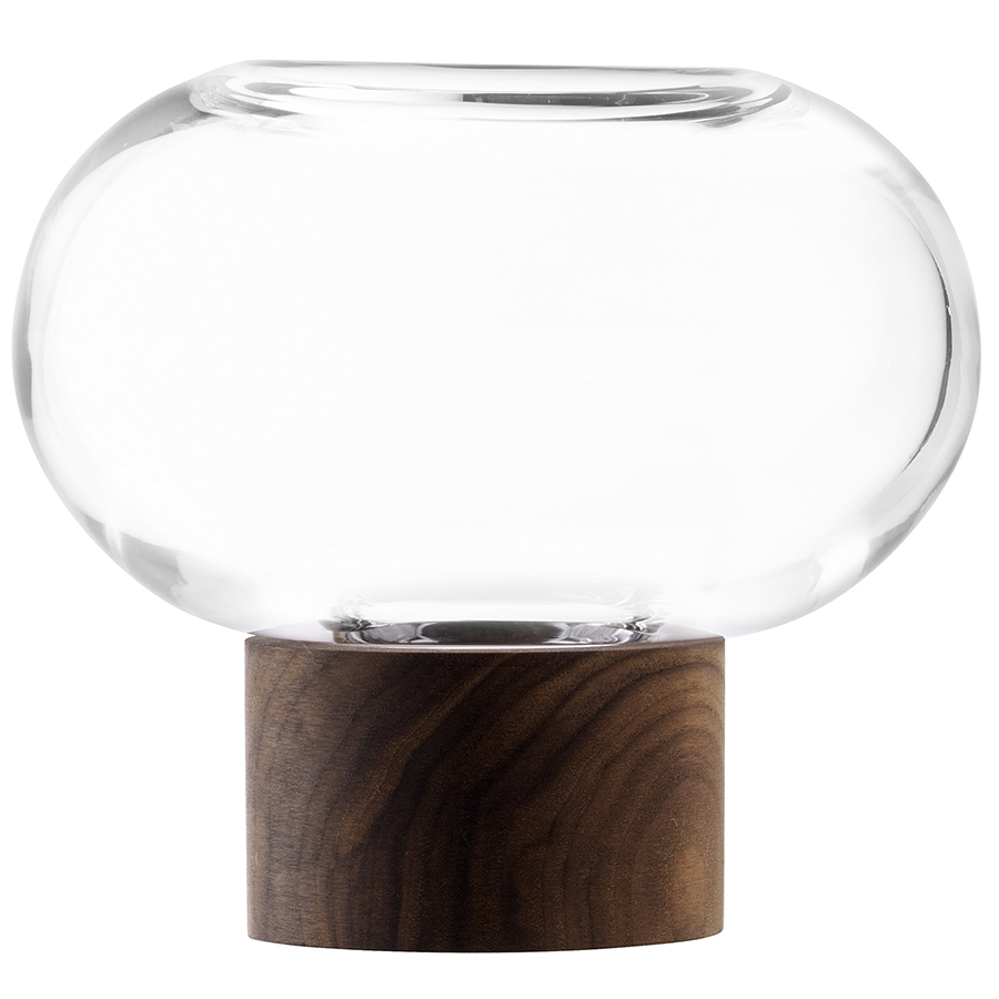 "Дизайнерская ваза сферической формы с основанием из ореха Oblate может служить сосудом для невысоких свежесрезанных букетов, цветочным горшком или арт-объектом.