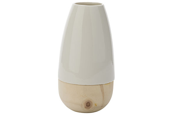 Ваза с деревянной нижней частью, 10,6X10,6XH20,2CM, доломит, цвет белый