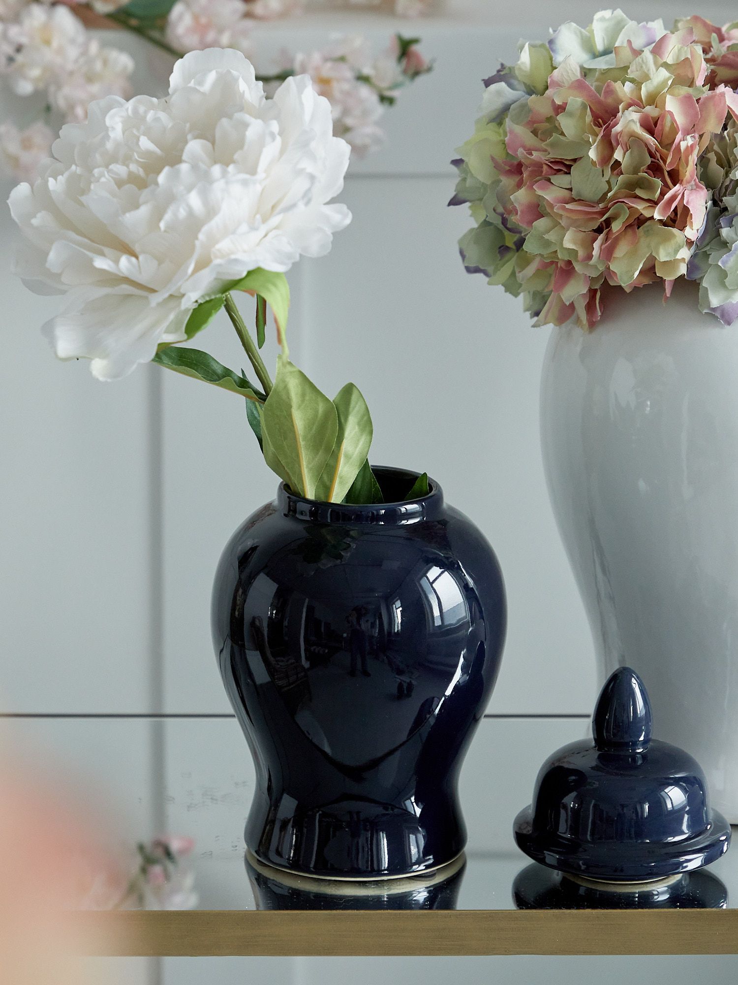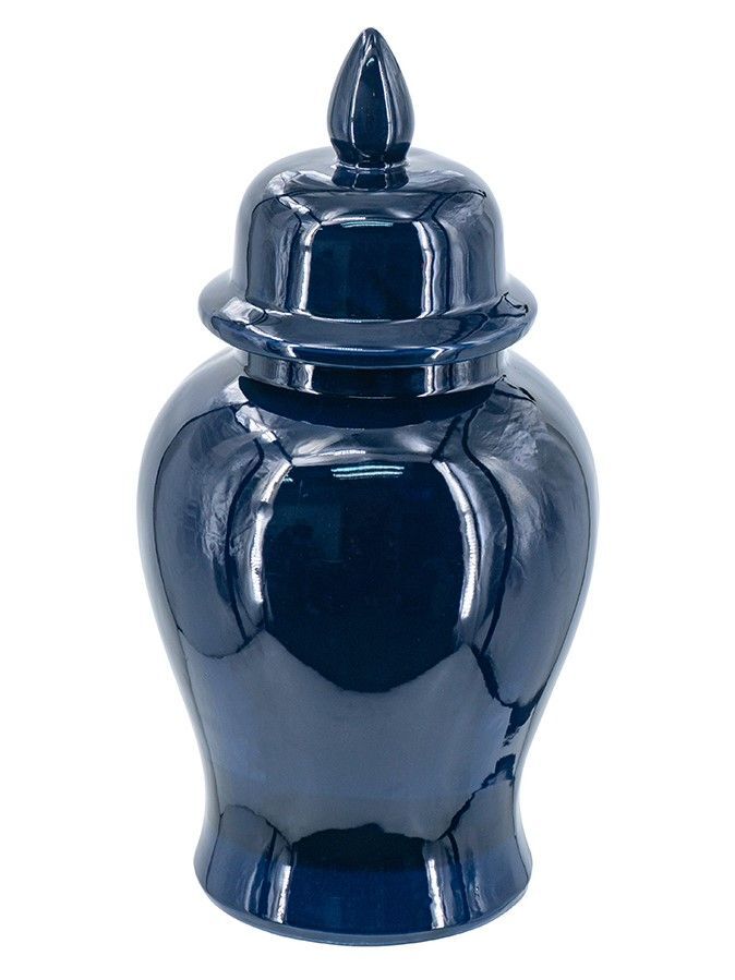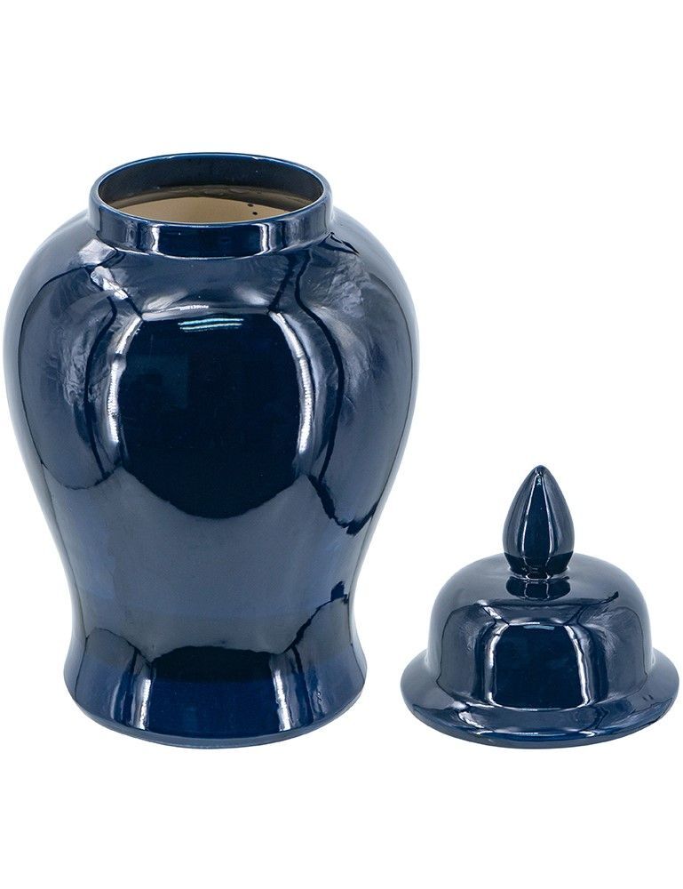Керамическая ваза с крышкой выполнена в лучших традициях классики. Изделие округлой формы в синем глянцевом цвете привлечет к себе внимание в любом помещении. Поставьте изделие отдельно, или с роскошной цветочной композицией, ваза украсит ваш интерьер на любой поверхности стола, комода или консоли, привлекая внимание ваших гостей из любого места в вашем доме.