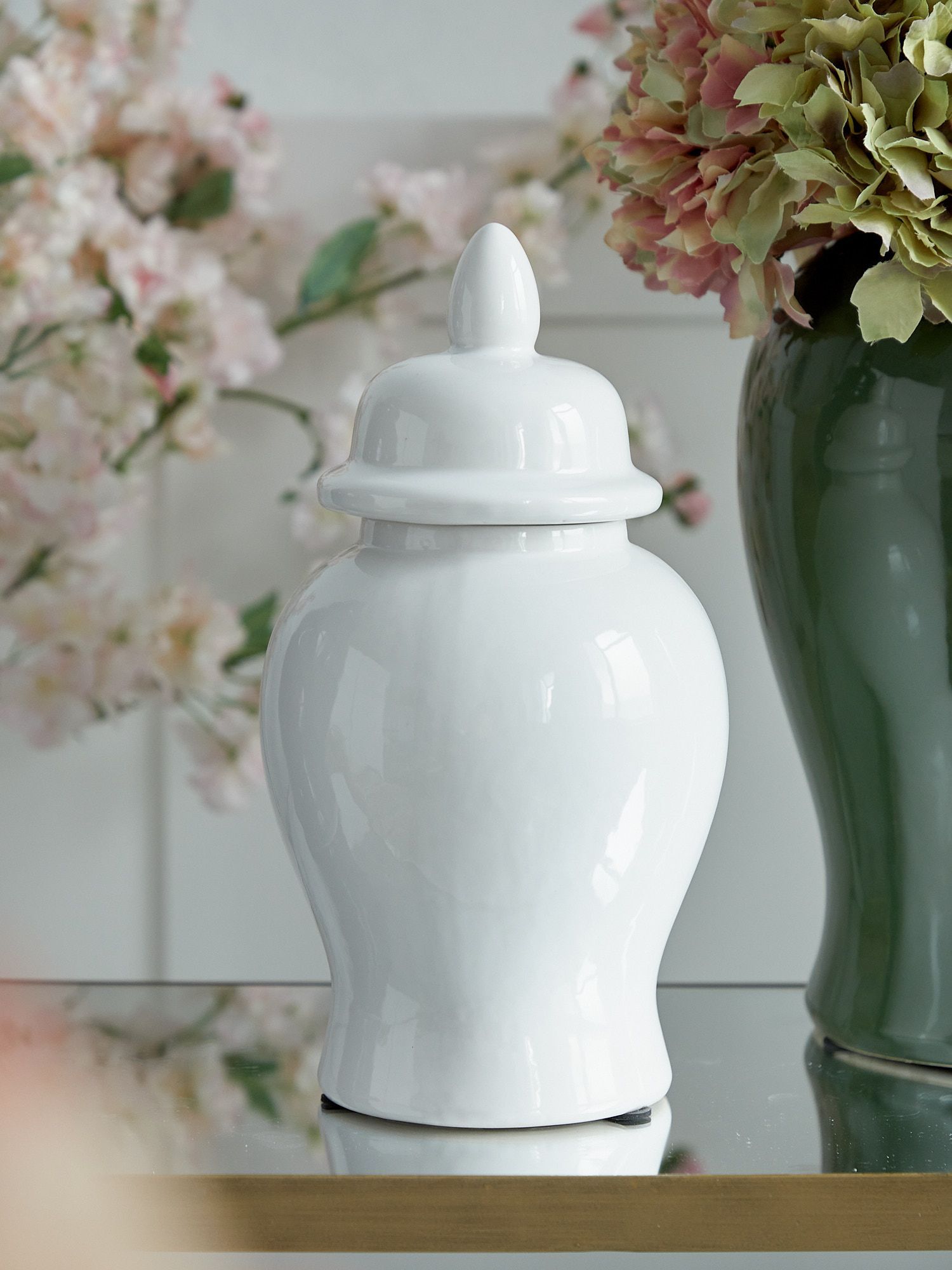 Керамическая ваза с крышкой выполнена в лучших традициях классики. Изделие округлой формы в белом цвете привлечет к себе внимание в любом помещении. Поставьте изделие отдельно, или с роскошной цветочной композицией, ваза украсит ваш интерьер на любой поверхности стола, комода или консоли, привлекая внимание ваших гостей из любого места в вашем доме.