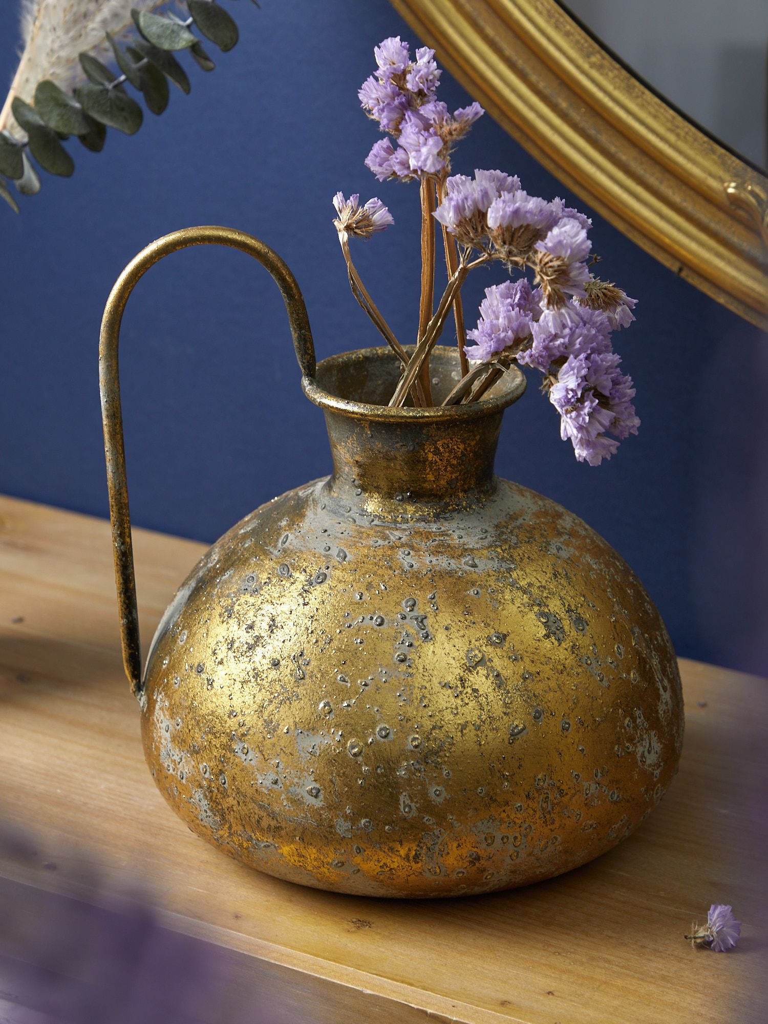 Интерьерная ваза с ручкой необычной формы, выполненная из металла в африканском стиле, создана для сухоцветов и искусственных цветочных композиций. Изделие имеет признаки искусственного состаривания, поверхность декорирована с эффектом патинирования, а наличие сварочных швов подчеркивают принадлежность к ручной работе. Благодаря лаконичности формы подходит для любого интерьера. Эксклюзивные формы и фактуры навеяло богатство культуры Африки, множество художественных традиций и таинственная атмосфера, окутывающая неподражаемостью.