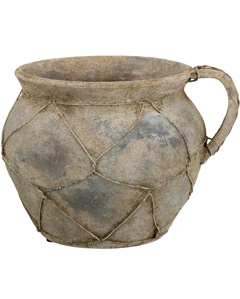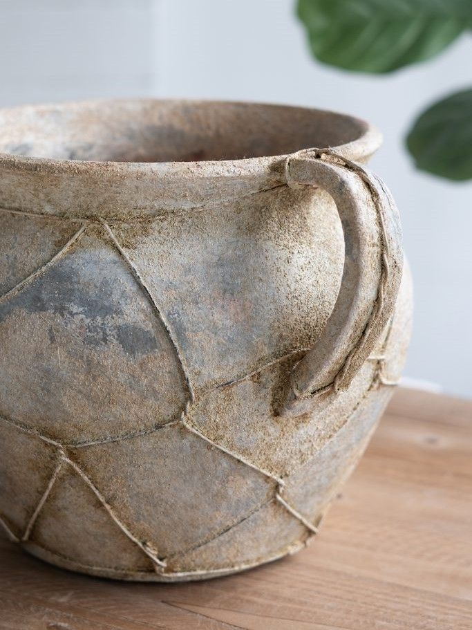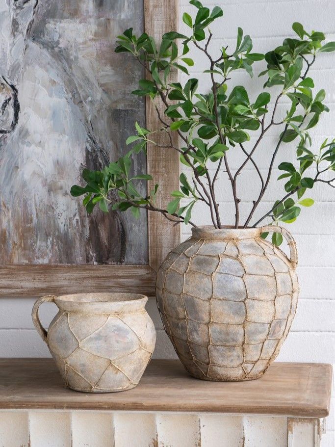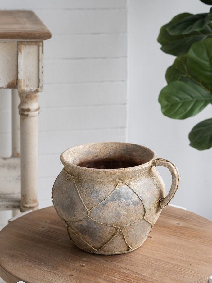 Керамическая ваза ручной работы, вдохновленная красотой древней керамики, имеет округлую форму, сдержанную цветовую гамму в винтажном стиле и неподражаемую внешнюю поверхность, украшенную плетенной проволокой. Независимо от того, стоит ли она сама по себе или в сочетании с искусственными цветами, ваза обязательно привнесет благородного шарма и неподражаемого стиля в вашу гостиную, прихожую, просторный холл или веранду. Разнообразная состаренная отделка позволяет этому изделию гармонично вписываться в стили французской провинции, рустикальный, фермерский и богемный, легко вписываясь в любую обстановку.