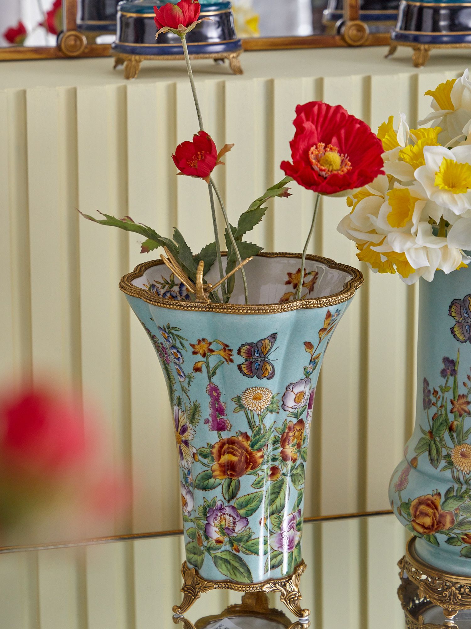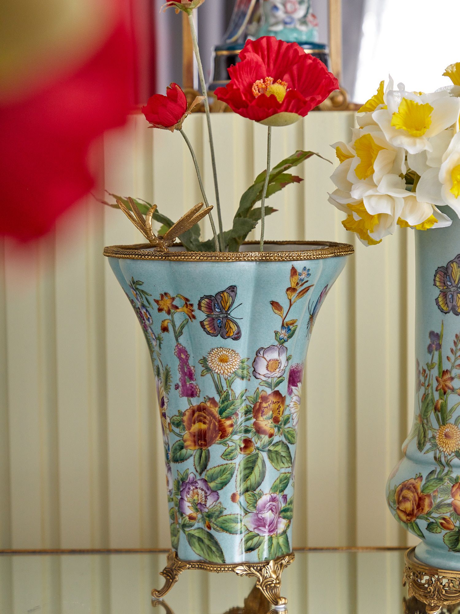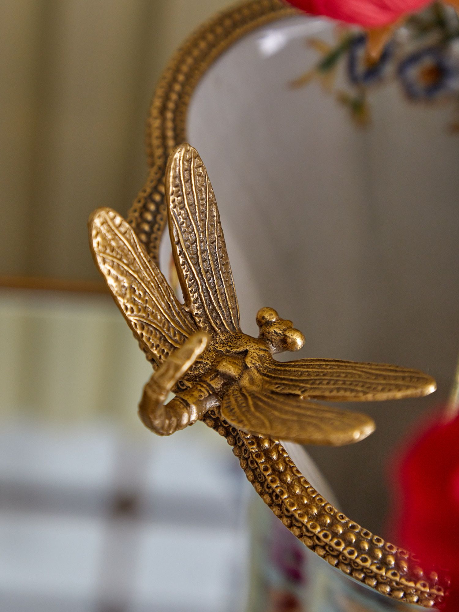 Ваза со стрекозой, выполненная из фарфора с бронзовыми элементами. Уникальное изделие ручной работы. При производстве этих художественных изделий из фарфора с бронзой используются вековые традиции китайских мастеров. Видимые трещинки (кракелюры) делаются по уникальной технологии, что придает более благородный вид старинного изделия.