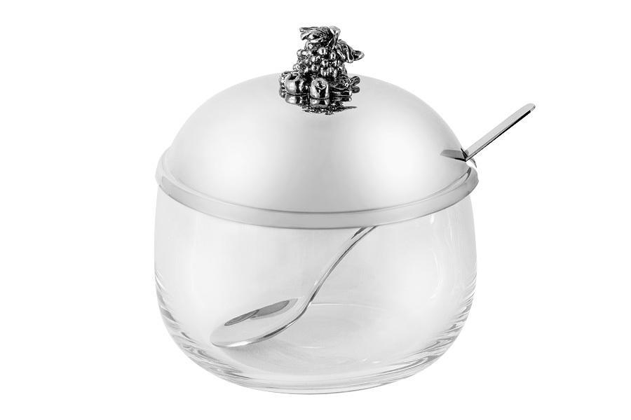 Вазочка для джема, 9x10 см, с ложкой, стекло/сталь, Vintage