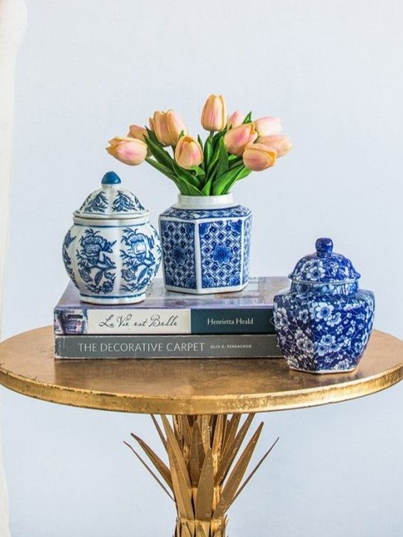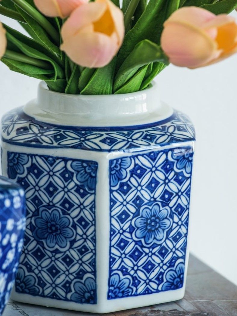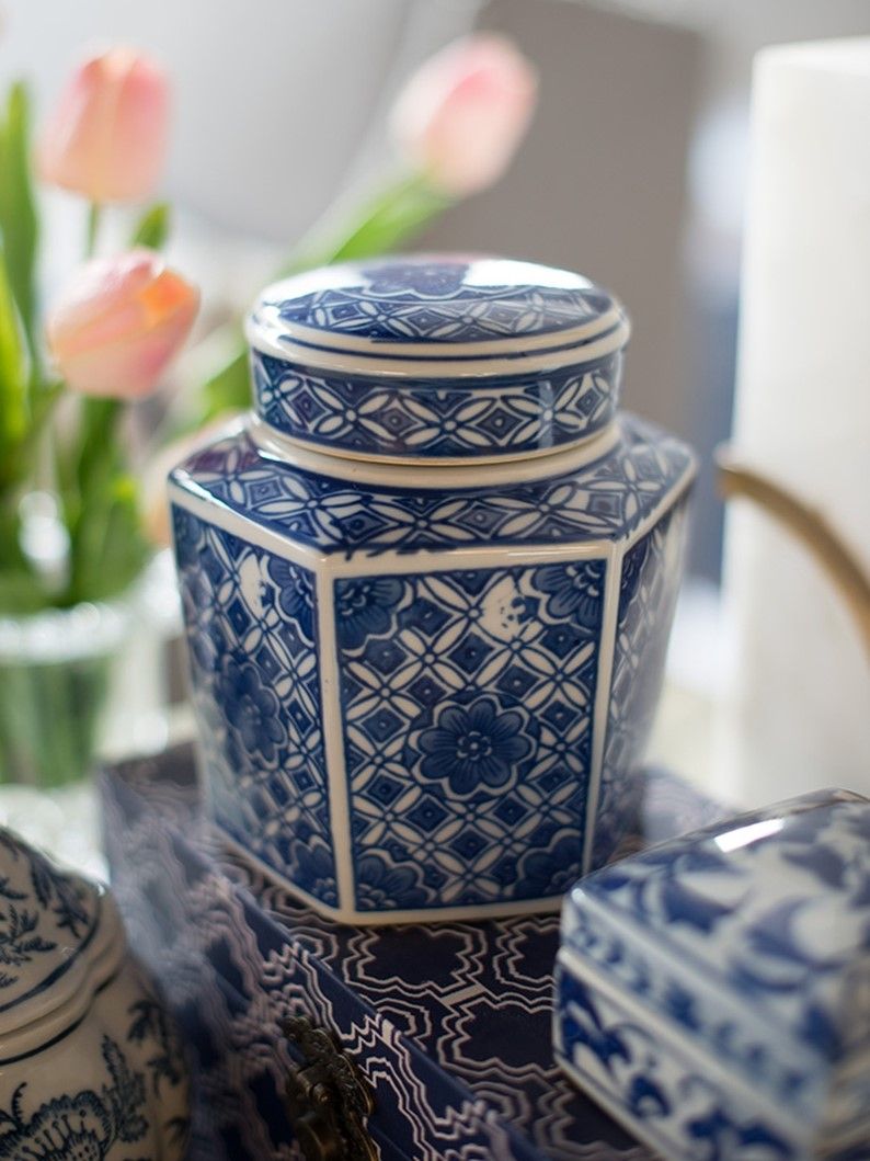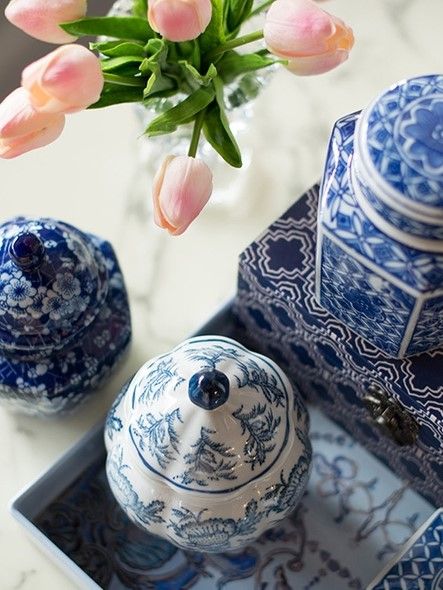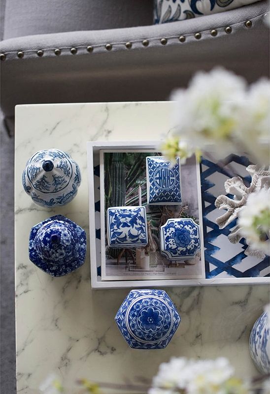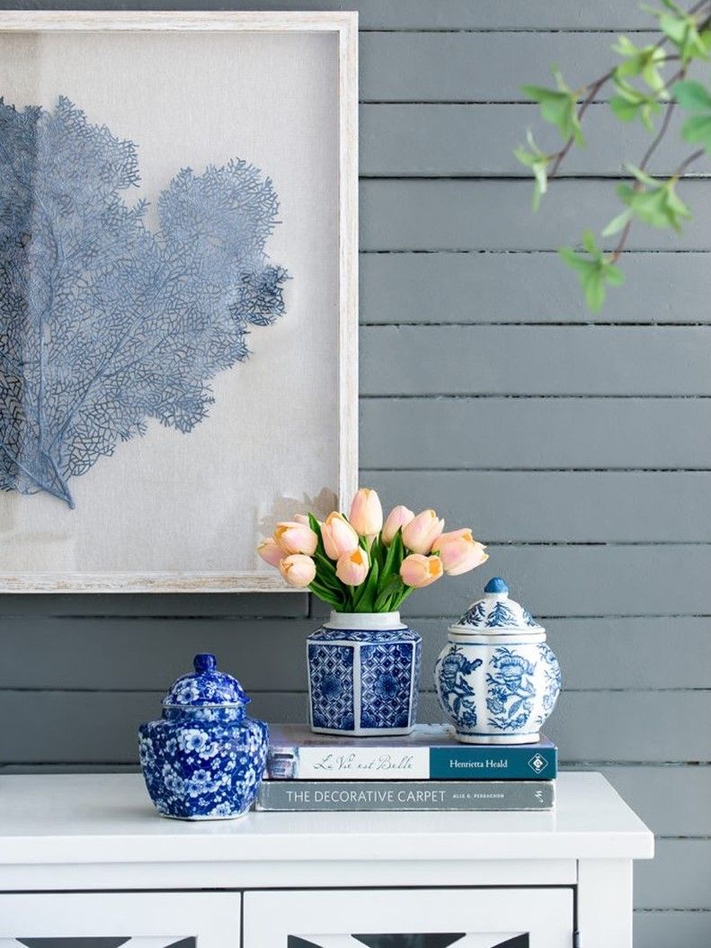 Набор декоративных ваз включает в себя множество стилистических влияний, и это полезный способ начать новую тематическую коллекцию. Все три изделия изготовлены из гладкого фарфора с белой глазурью, но каждый имеет свою отличительную форму и яркий синий узор.