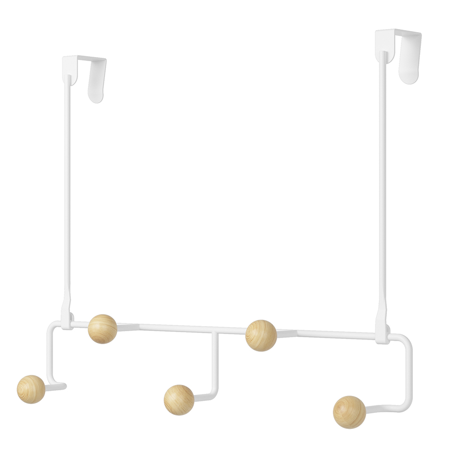 "Вешалка подвесная Estique поможет создать дополнительное, легкодоступное пространство для хранения повседневных вещей в любой комнате. За счет специальной конструкции модель можно повесить на дверь или любую другую горизонтальную плоскость. Прочное, устойчивое к коррозии стальное основание обеспечивает изделию надежность и долговечность. Крючки из древесины бука округлой формы с гладкой поверхностью исключают растягивание и случайное повреждение одежды, выдерживают нагрузку до 2,3 кг каждый. Сочетание дерева и металла органично вписывается в различные варианты оформления интерьера.