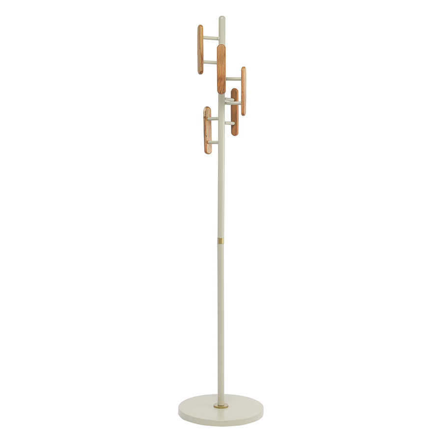 Материал: железо, дерево. Размеры: 40,8х40,8х186 см. Вес: 7,2 кг. Длина крючков: 10 см. Максимальна нагрузка на один крючок: до 7 кг. Максимальная нагрузка на вешалку: до 20 кг. Цвет: слоновая кость."