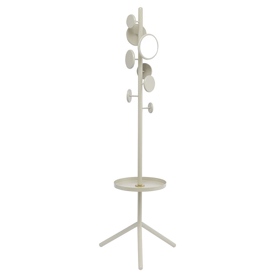 Материал: железо, стекло. Размеры: 56,5х56,5х181 см. Вес: 6,4 кг. Длина крючков: 7,2/7,5 см. Высота полки: 52,3 см. Максимальна нагрузка на один крючок: до 7 кг. Максимальная нагрузка на вешалку: до 20 кг. Цвет: слоновая кость."