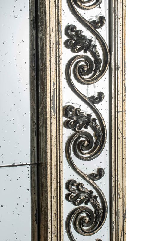 Уникальное зеркало в дворцовом стиле впечатляет своим размером и формой. Роскошный багет с резным орнаментом делают это зеркало настоящим произведением искусства.