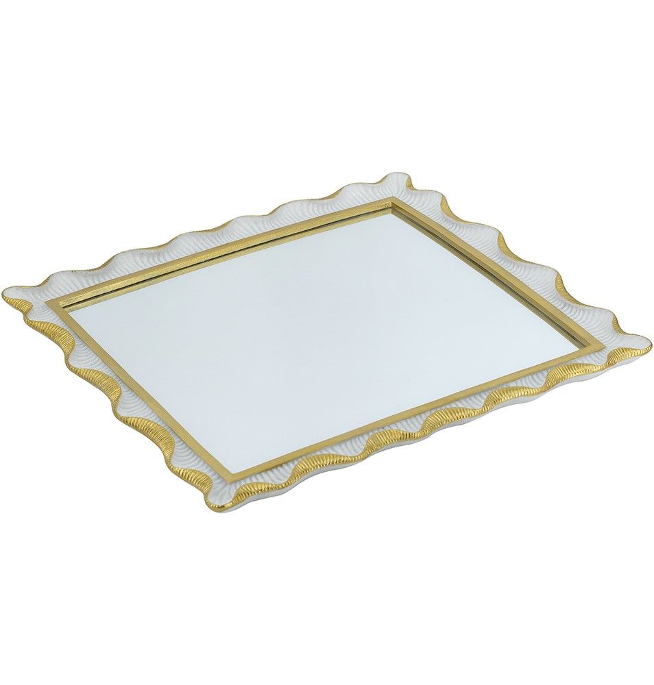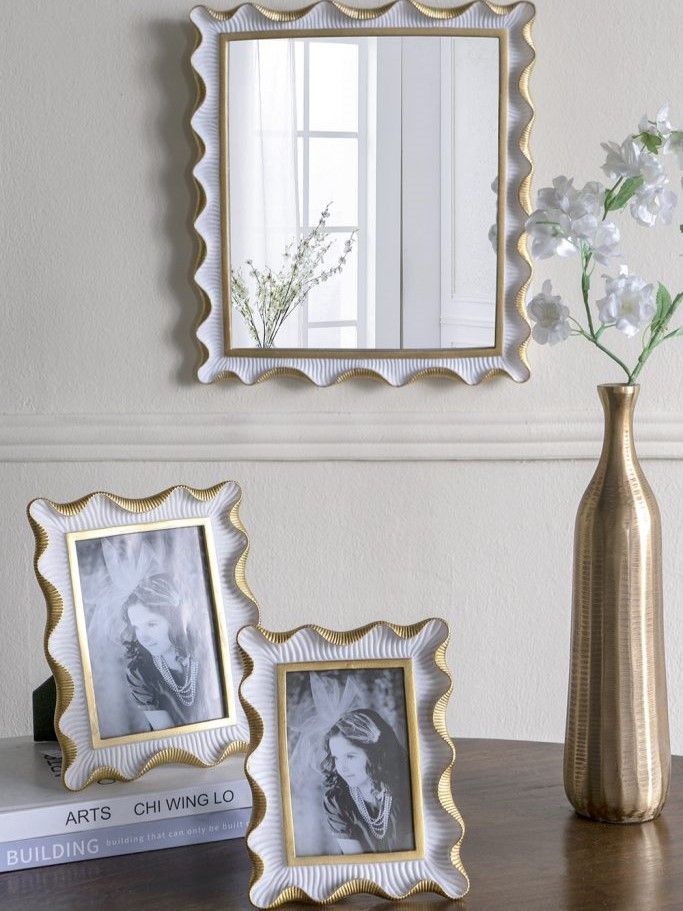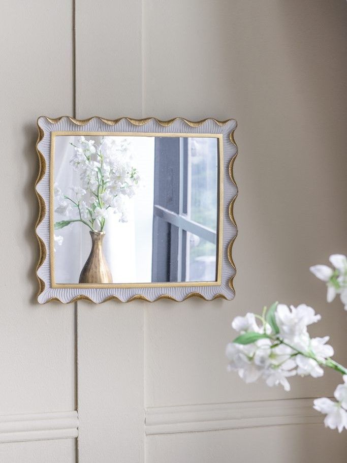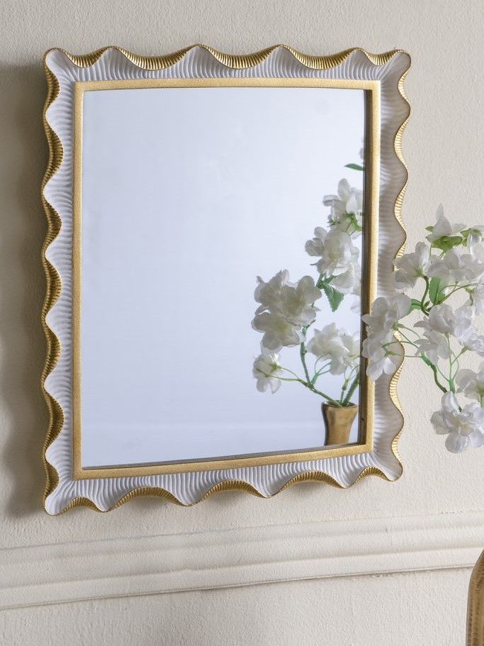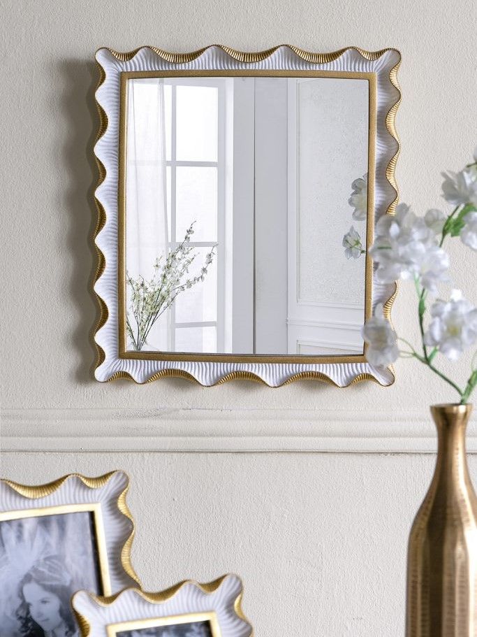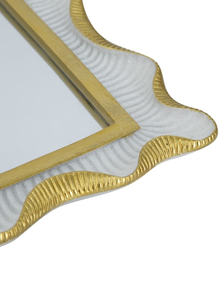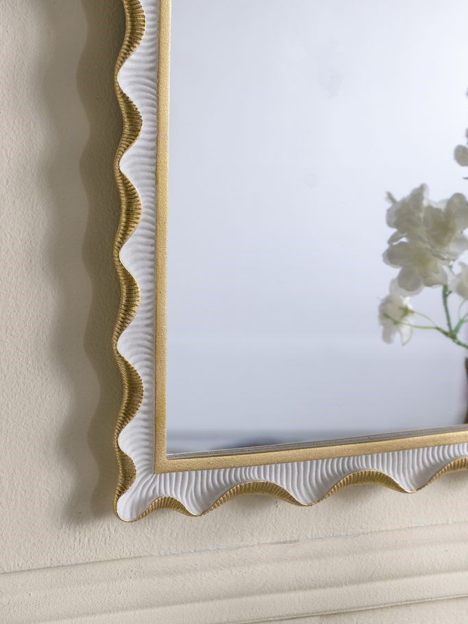 Декоративное зеркало с волнистой окантовкой, выполненное в привлекательном сочетании белого и золотистого цветов, превращает классический квадратный силуэт в элегантный акцент. Его можно разместить в гостиной, прихожей, ванной комнате или кабинете. Прочная конструкция из каменной крошки и смолы прослужит вам долгие годы. Высококачественное стекло не только обеспечивает кристально чистое отражение, но и усиливает естественное освещение, благодаря чему любое помещение кажется более просторным, а ваш интерьер приобретает новое измерение.