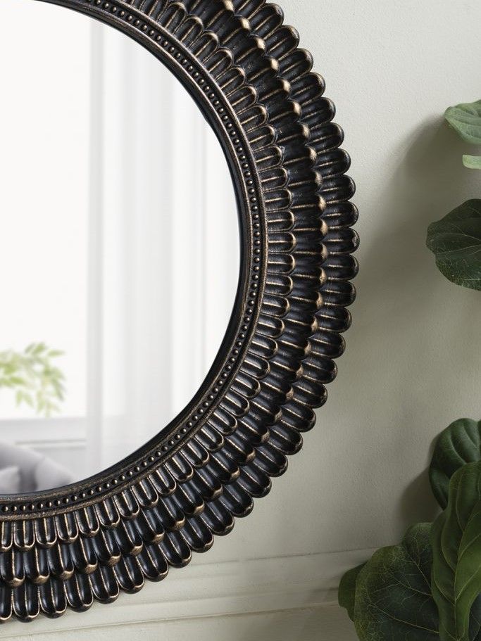 Новый скульптурный вариант классического акцентного зеркала с текстурированным дизайном рамы, погруженной в черный цвет с золотистыми прожилками в винтажном стиле. Зеркало украсит любую стену в гостиной, прихожей, спальной комнате или кабинете. Высококачественное стекло не только обеспечивает кристально чистое отражение, но и усиливает естественное освещение, благодаря чему любое помещение кажется более просторным, а ваш интерьер приобретает новое измерение.