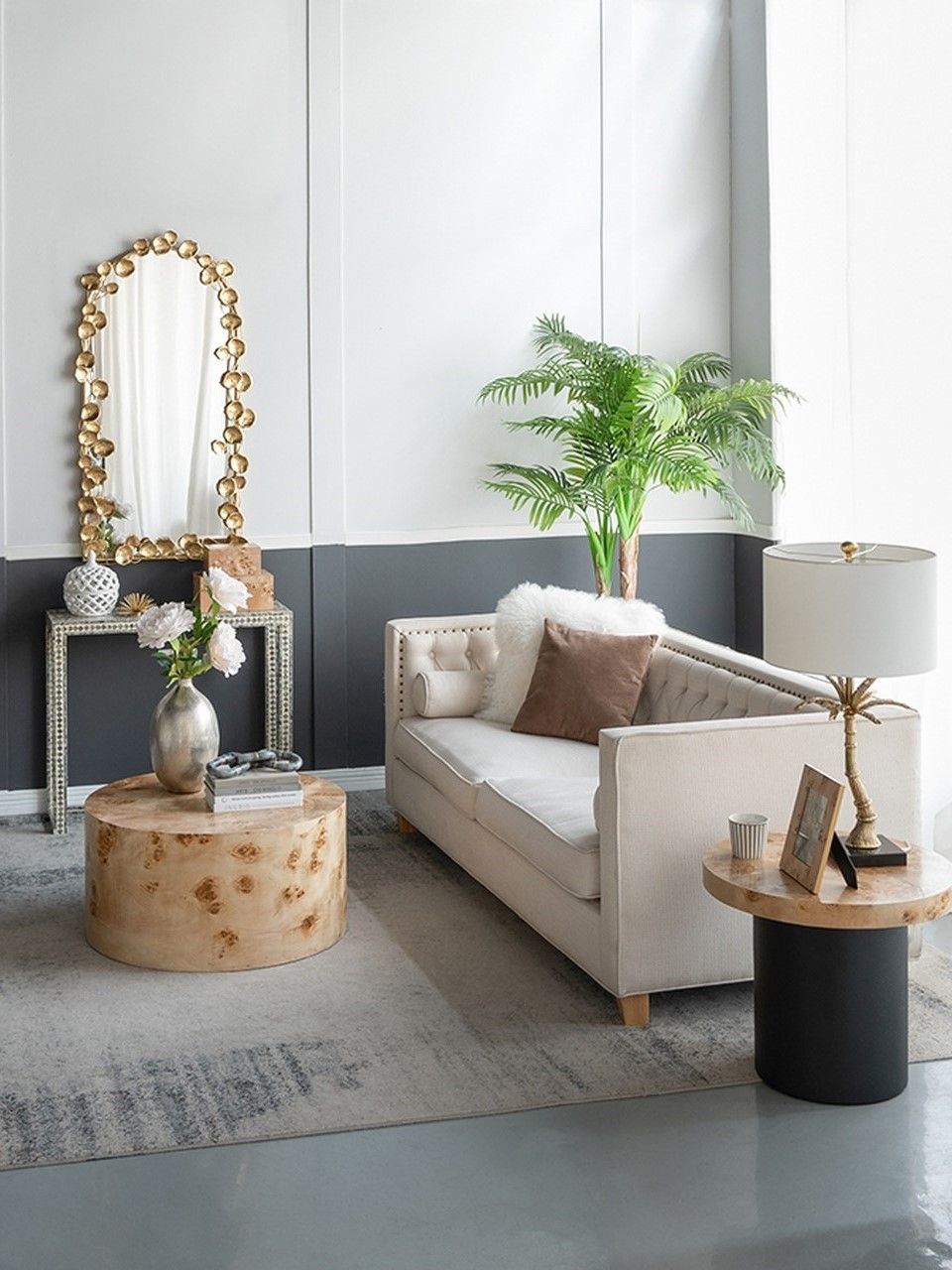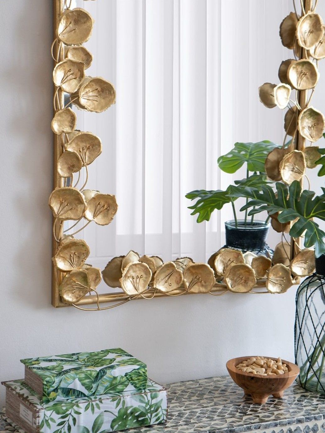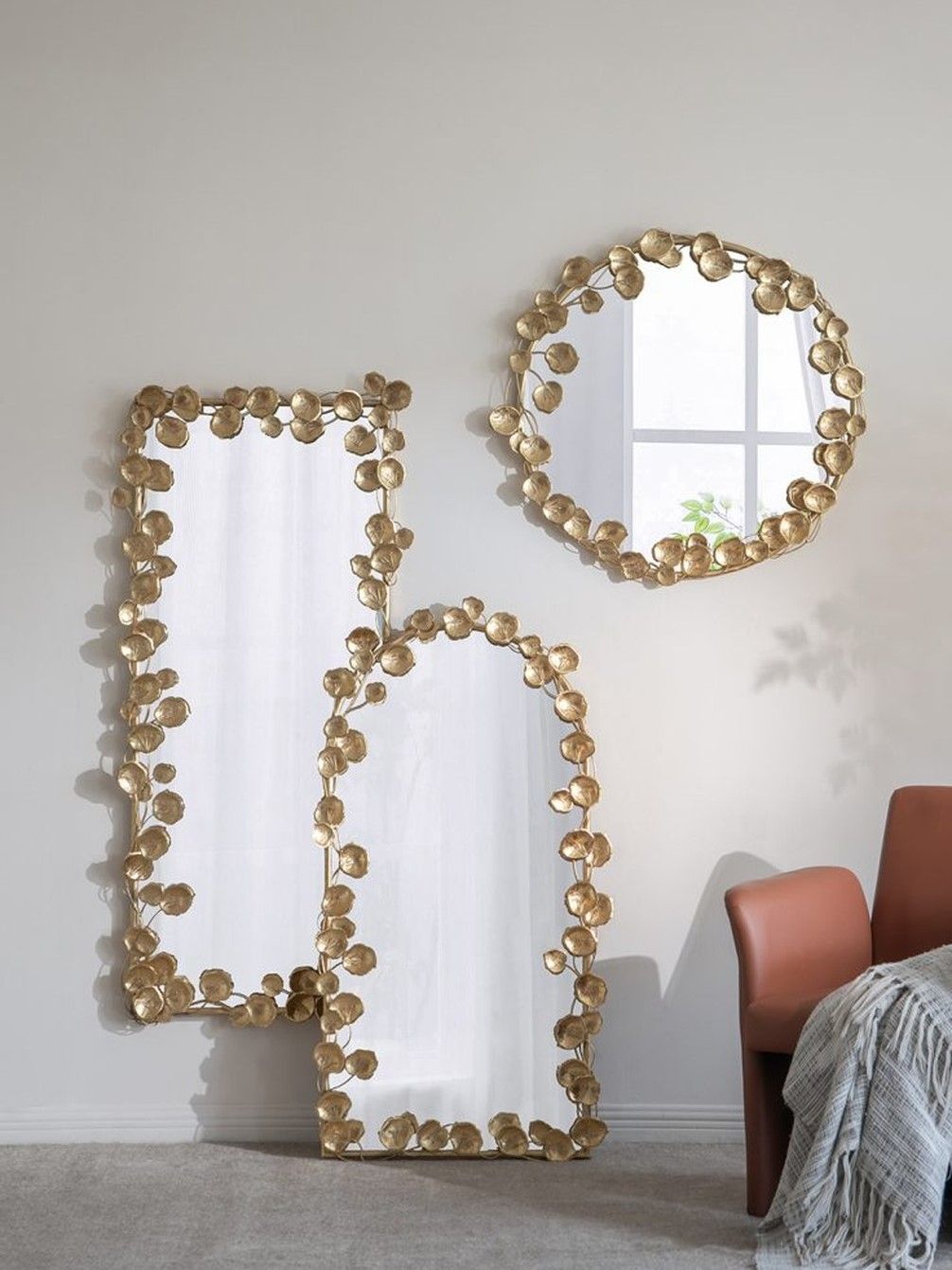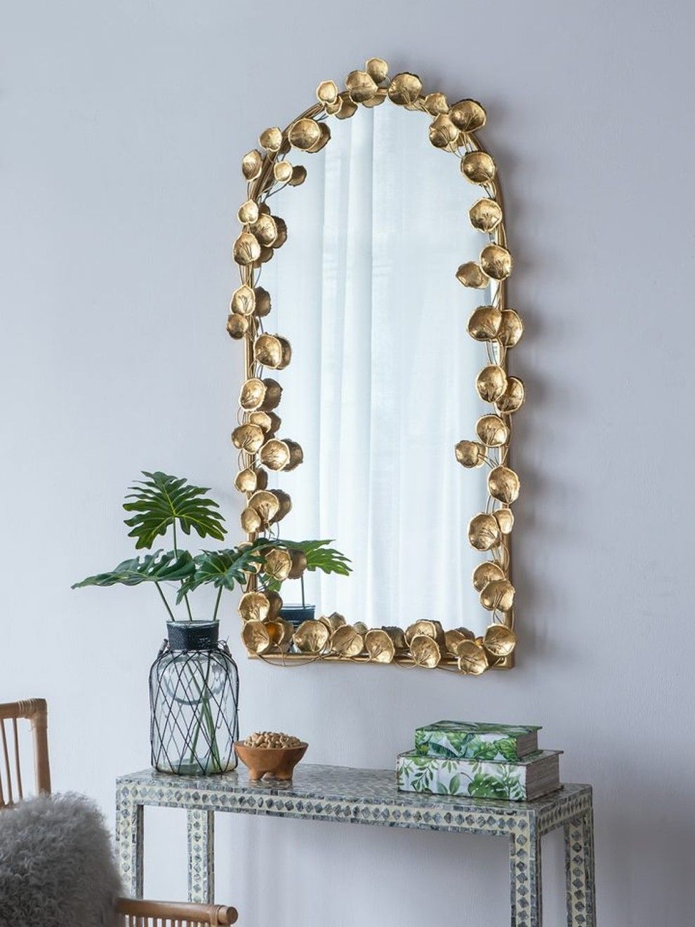 Неподражаемое настенное зеркало с обрамлением в виде листков лотоса, украсит современный интерьер вашего дома и воплотит дизайнерские мечты. Повесьте изделие в прихожей, просторной гостиной или над консольным столиком, чтобы придать современный вид вашему жилому пространству.