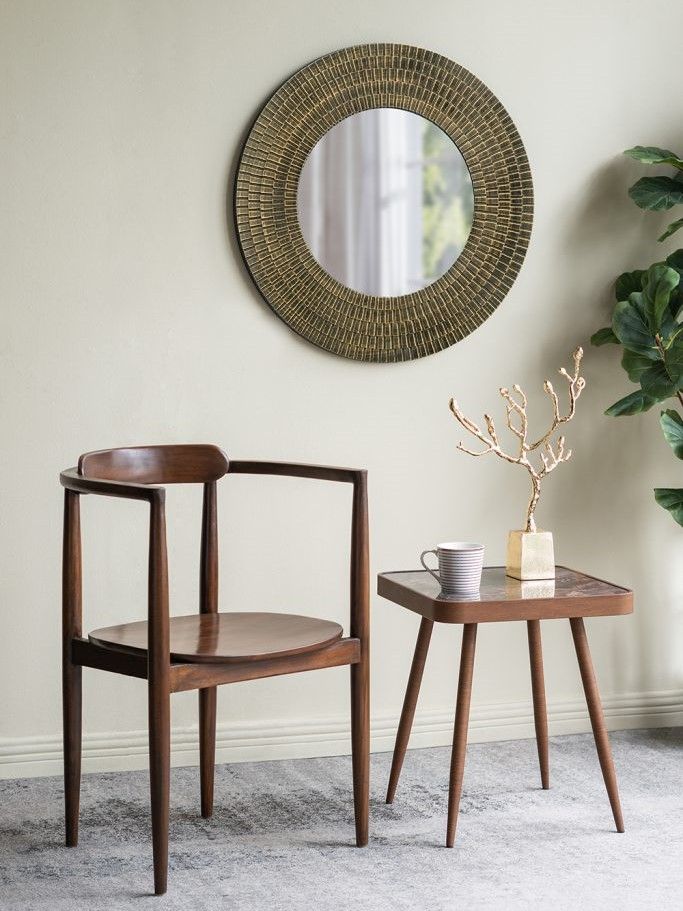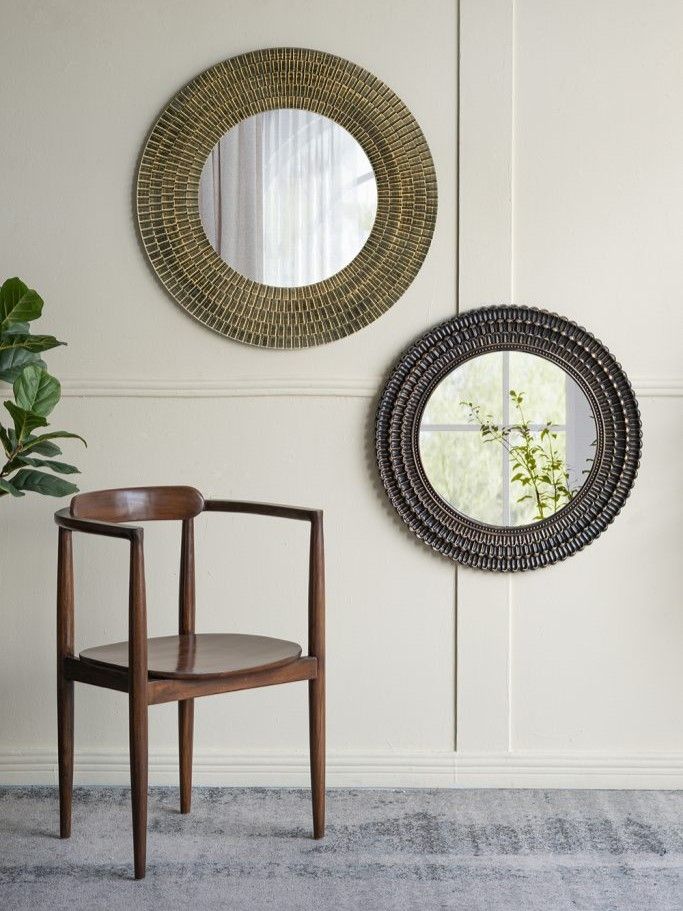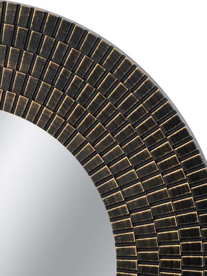 Изделие представляет собой вариант классического акцентного зеркала с текстурированным дизайном рамы. Выполненное в насыщенном черно-золотистом цвете, изделие украсит любую стену в гостиной, прихожей, спальной комнате или кабинете офиса. Высококачественное стекло не только обеспечивает кристально чистое отражение, но и усиливает естественное освещение, благодаря чему любое помещение кажется более просторным, а ваш интерьер приобретает новое измерение.
