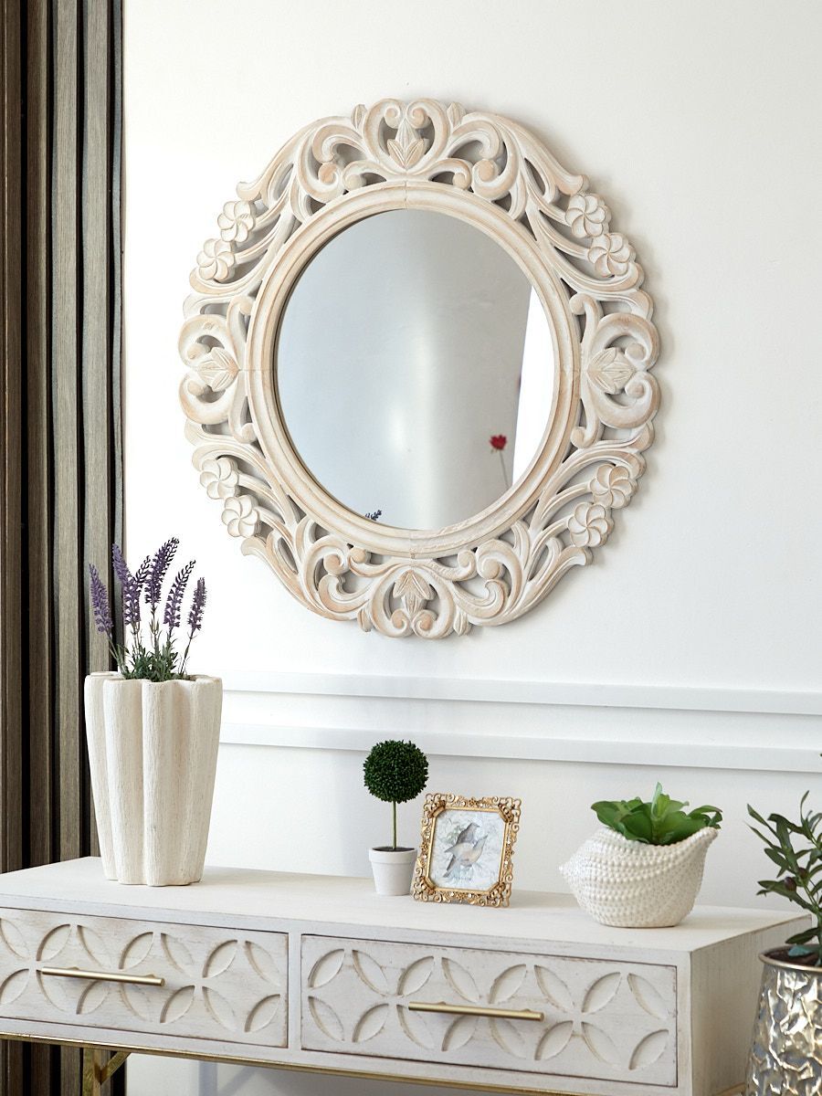 Изысканное настенное зеркало с резным обрамлением, выполненное из натурального дерева, станет ярким акцентом в интерьере вашего дома. Изделие без сомнений займет центральное место и подчеркнет красоту вашей гостиной или спальной комнаты.