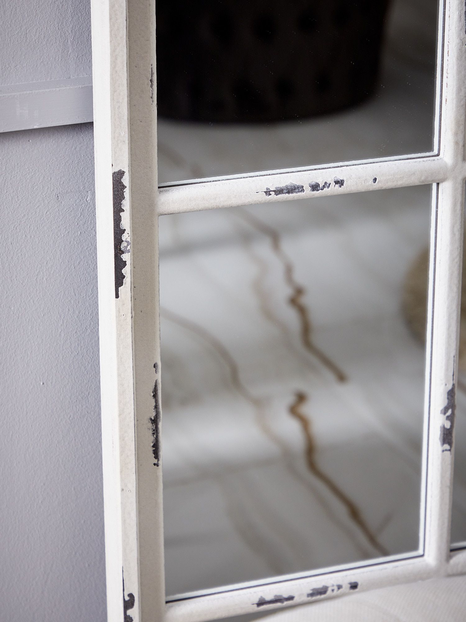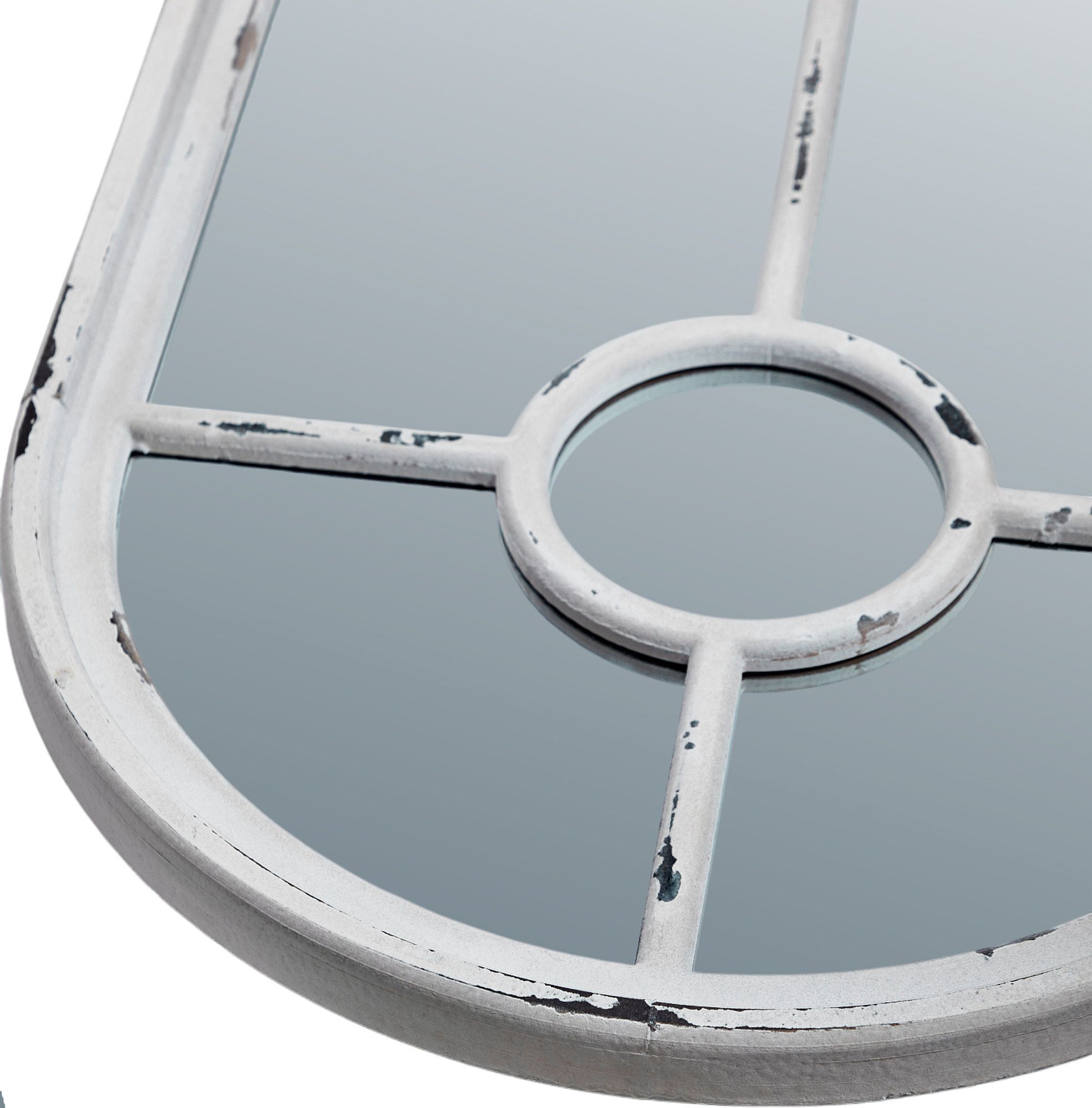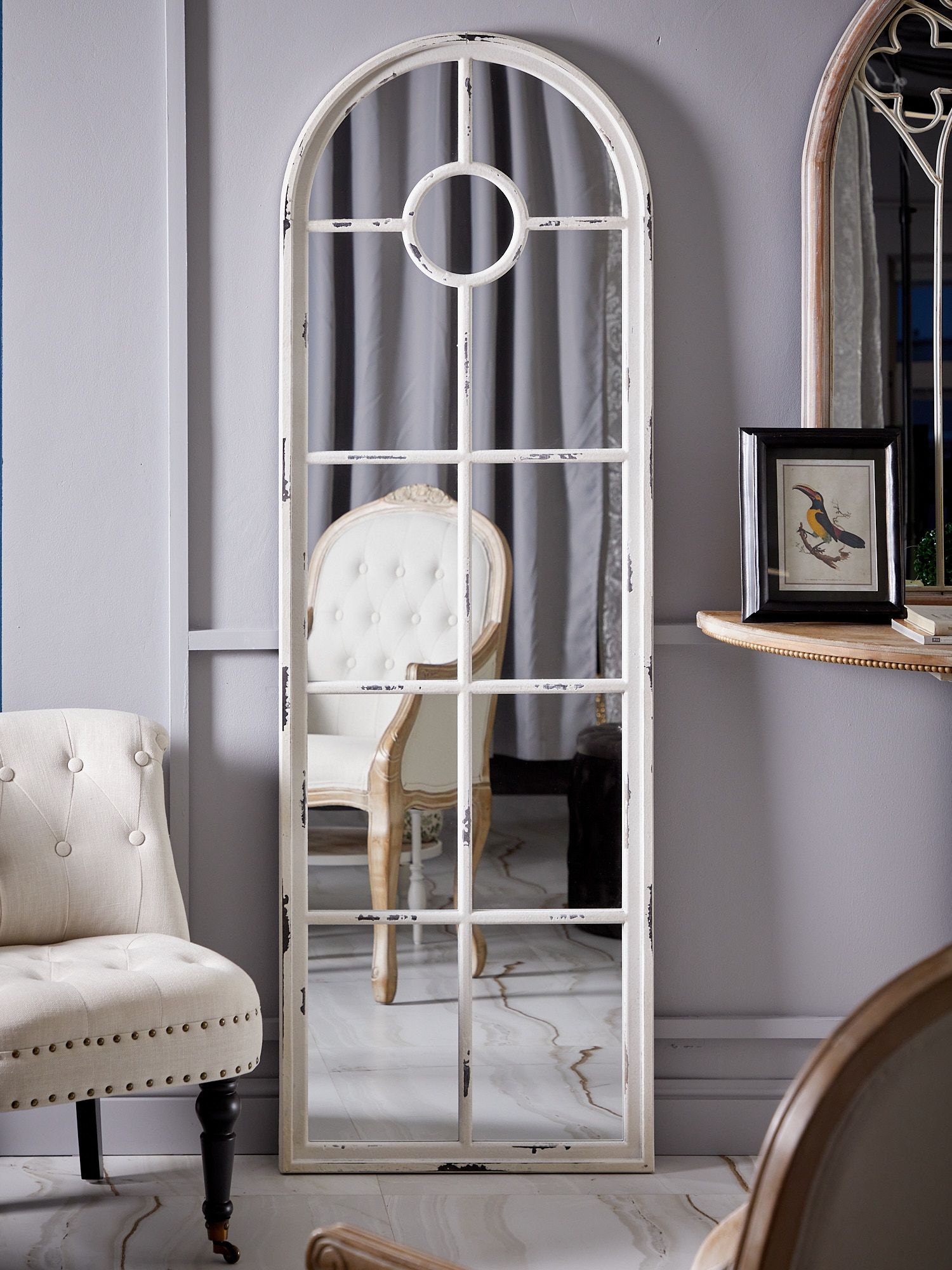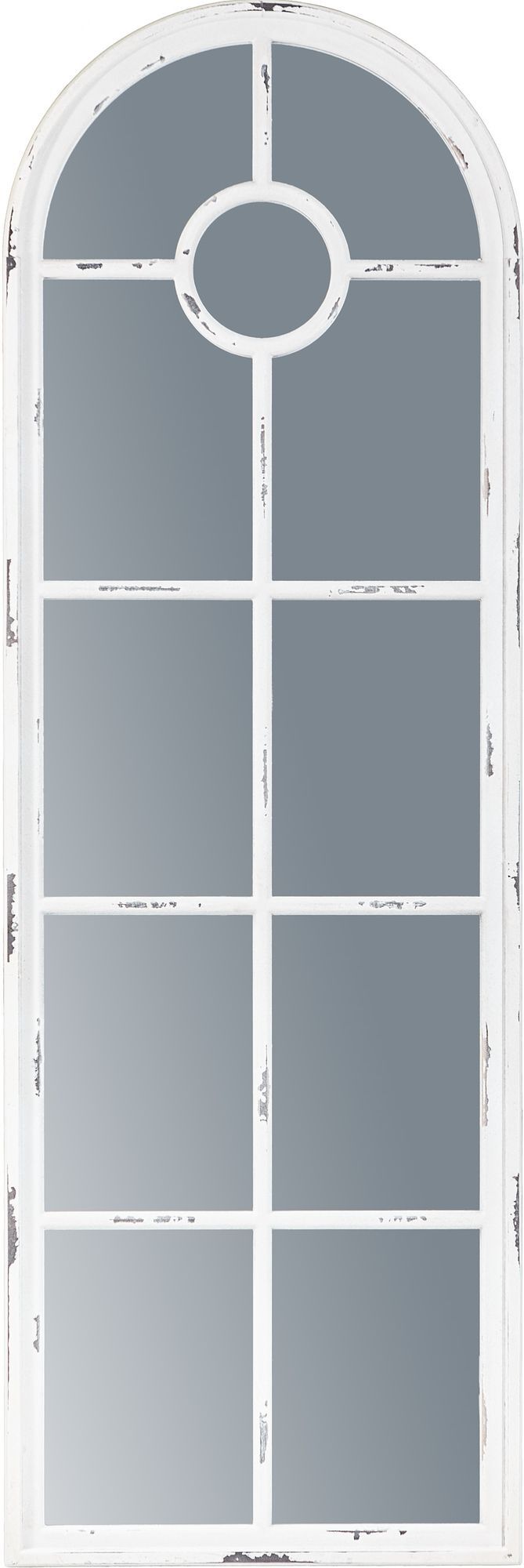 Настенное зеркало в виде дворцового окна, увенчанного арочным силуэтом и украшенного перегородками в центральной части, привнесет величественный стиль ушедших эпох в ваш дом. Это изделие без сомнений займет центральное место и подчеркнет красоту вашей гостиной или спальной комнаты, визуально увеличивая пространство помещения. Поверхностные потертости и неровности с эффектом реставрации, трещины и сколы краски на изделии характеризуют индивидуальный подход к производству каждого предмета, создавая задуманный дизайнером античный образ ушедших эпох.