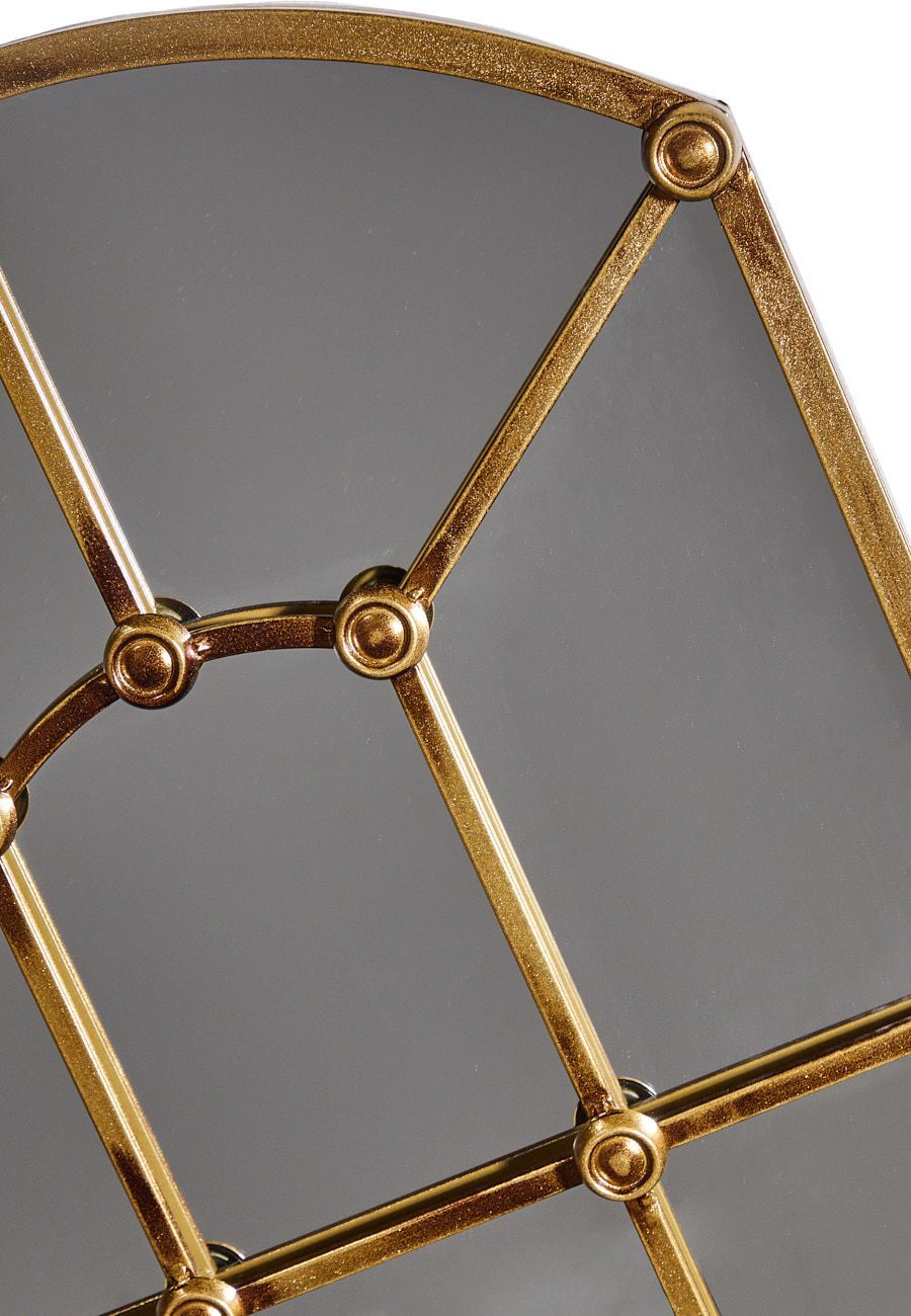 Настенное зеркало в виде дворцового окна в тосканском стиле, украшенное рамой коричневого цвета с фактурными перегородками. Это изделие без сомнений займет центральное место и подчеркнет красоту вашей гостиной или спальной комнаты, визуально увеличивая пространство помещения.