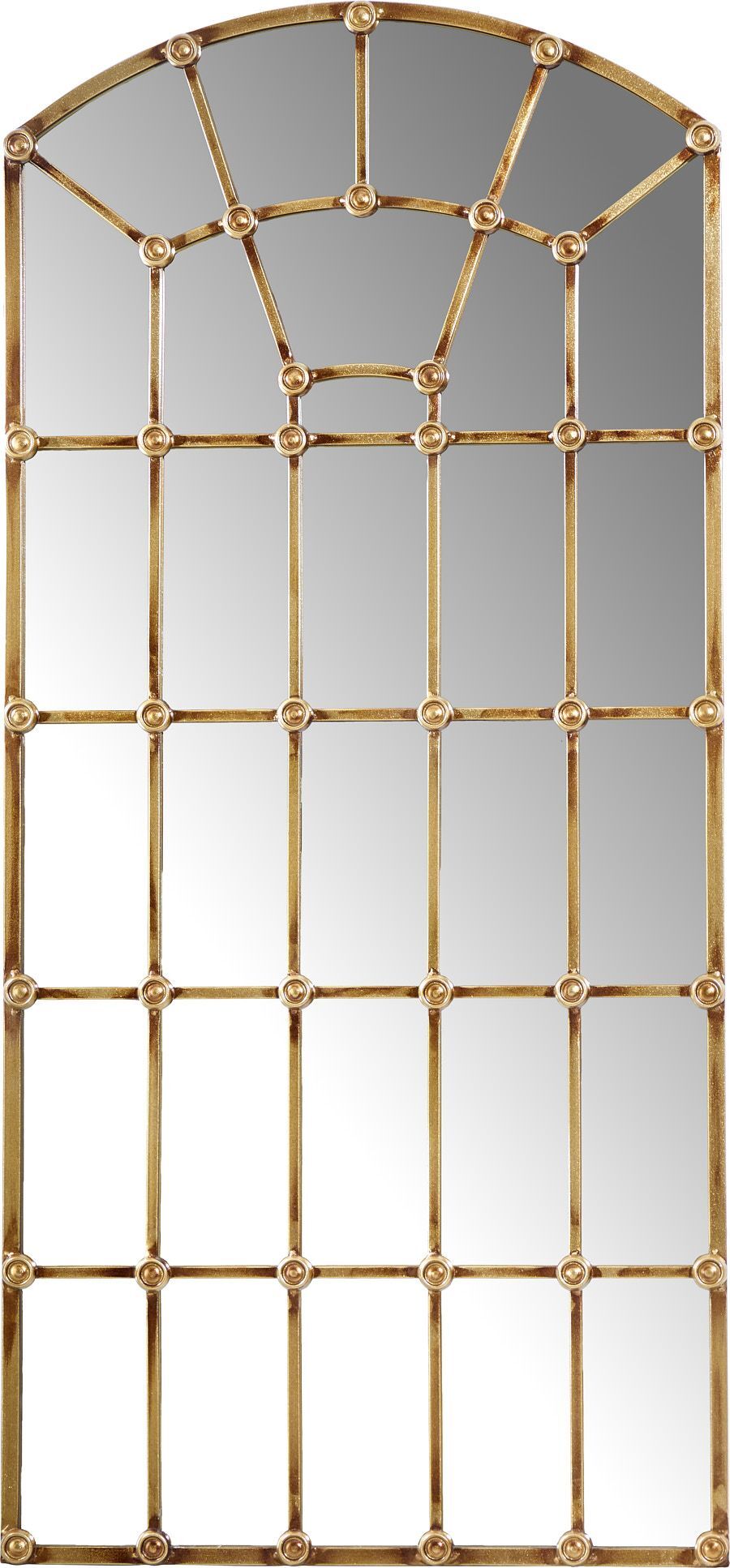 Настенное зеркало в виде дворцового окна в тосканском стиле, украшенное рамой коричневого цвета с фактурными перегородками. Это изделие без сомнений займет центральное место и подчеркнет красоту вашей гостиной или спальной комнаты, визуально увеличивая пространство помещения.