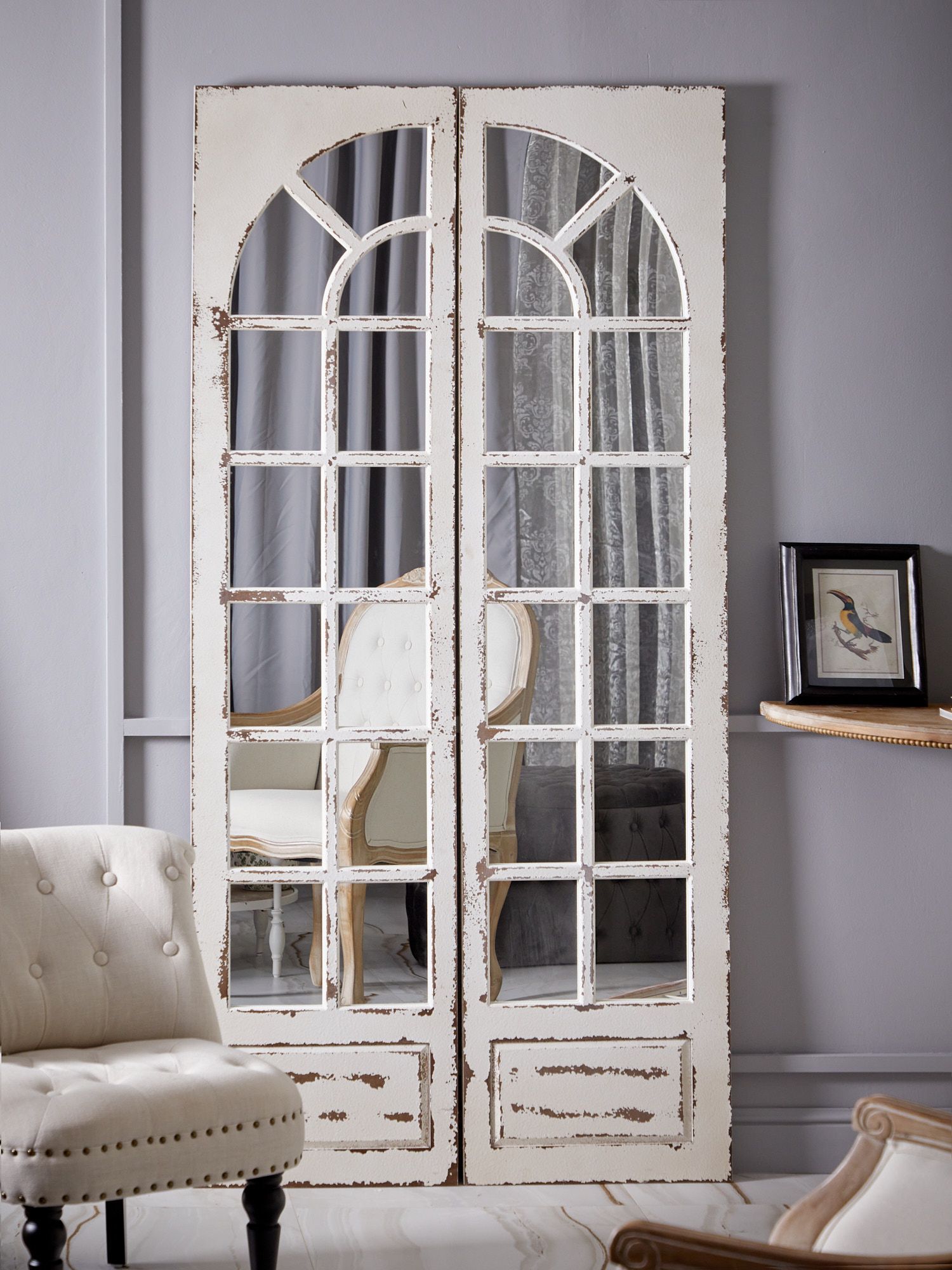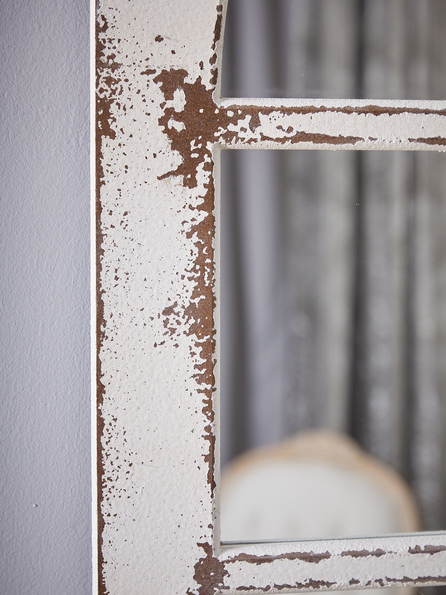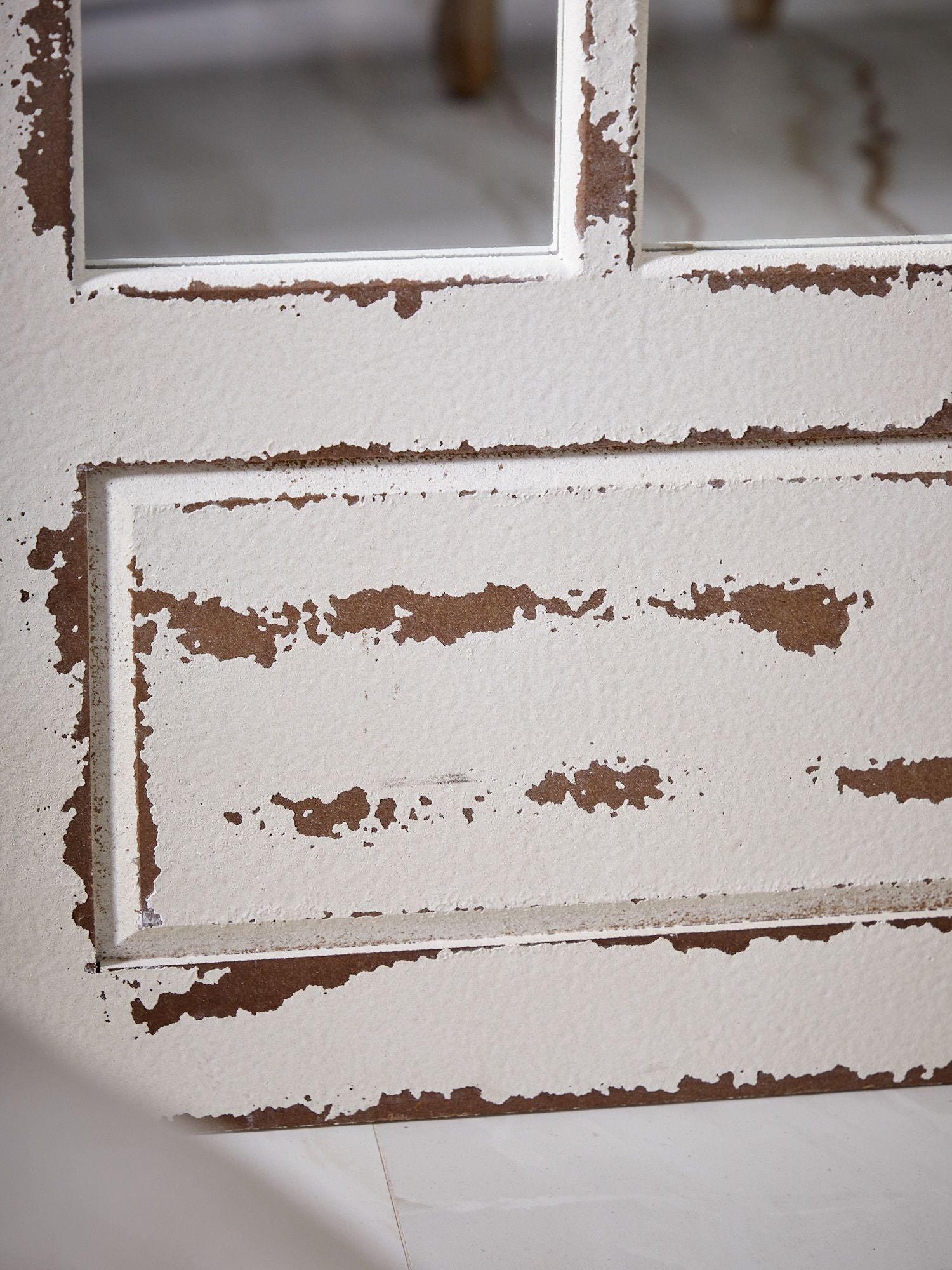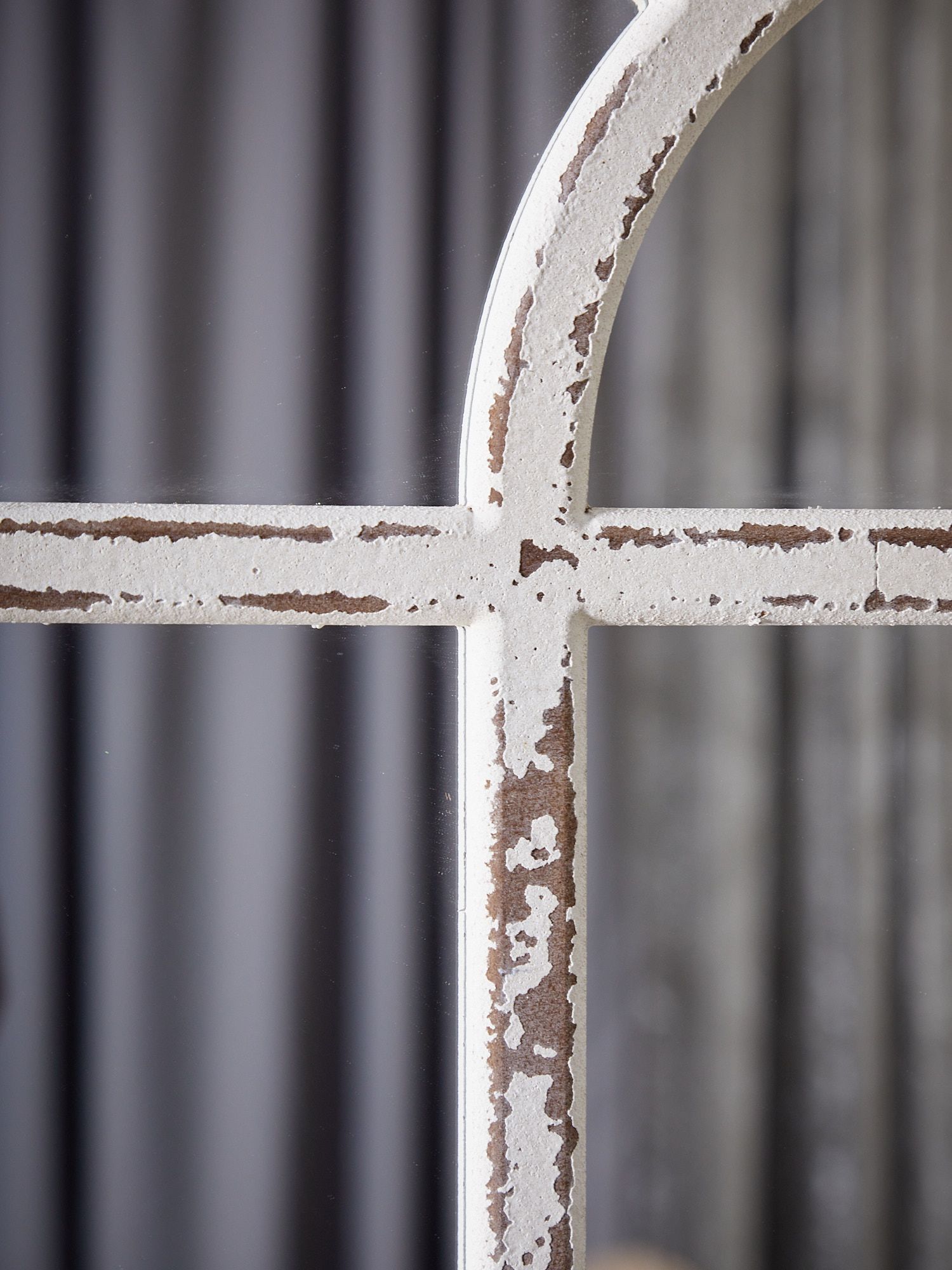Роскошное настенное зеркало в раме оригинальной формы, напоминающей венецианский стиль окна, украшенного множеством перегородок. Уникальная эстетика и гармония этого изделия никогда не потеряют свою актуальность, демонстрируя на своей поверхности величественность вековых традиций от венецианских мастеров, а винтажный стиль этого зеркала придаст вашей обстановке образ романтики и шарма. Поверхностные потертости и неровности с эффектом реставрации, трещины и сколы краски на изделии характеризуют индивидуальный подход к производству каждого предмета, создавая задуманный дизайнером античный образ ушедших эпох.